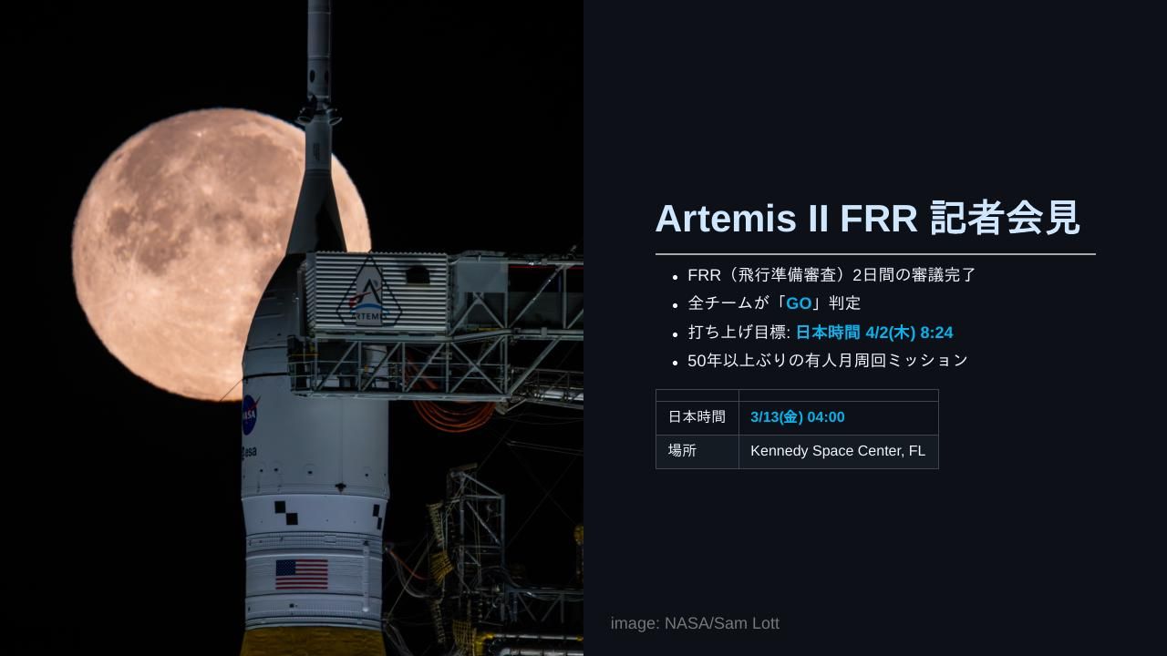 「アルテミス2号」打ち上げ準備審査(FRR)記者会見
