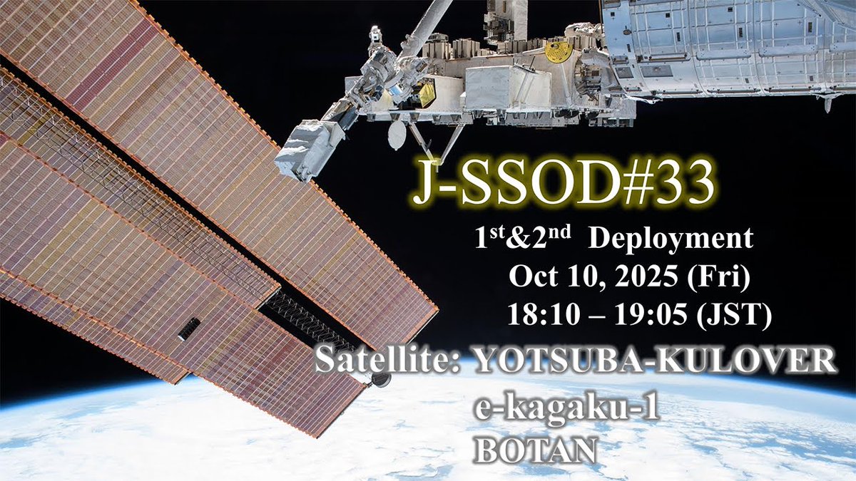 JAXAは、10月10日に国際宇宙ステーション(ISS)の日本実験棟「きぼう」から、超小型衛星「YOTSUBA-KULOVER」「e-kagaku-1」「BOTAN」の3基を放出すると発表した。放出の様子はライブ配信される予定。