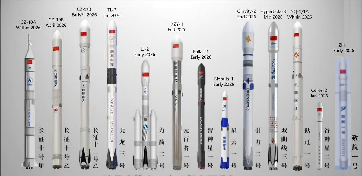 中国の民間宇宙企業各社(CAS Space、Galactic Energy、LandSpaceなど)は、2026年に向けて多数の新型ロケットの初飛行や打ち上げを計画しています。これには長征10Aや天竜3号などが含まれます。