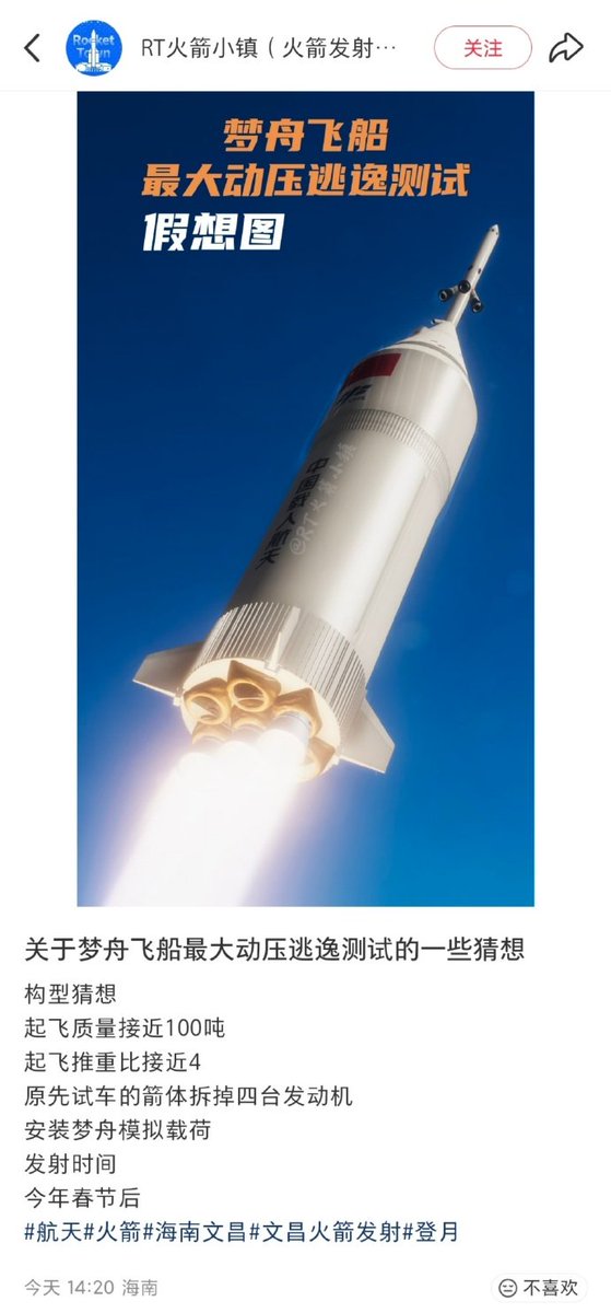 中国の次世代有人宇宙船「夢舟」の試験飛行について、春節明け(2月末)に延期される可能性や、ロケットの構成に関する情報が報じられています。